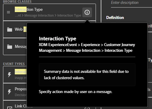 After creating it, I noticed the info "Summary data is not available for this field due to lack of clustered values" in the InteractionType field. Is this somehow related to the Summaries job? I admit I didn't understand it.