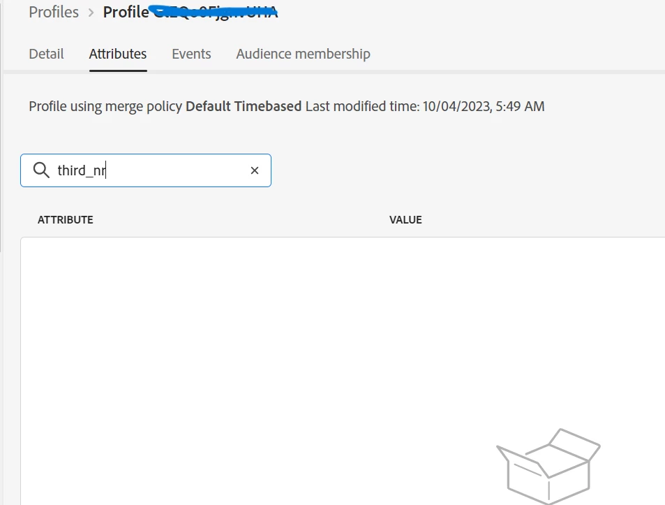 I'm able to see (THIRD_NR) new attribute in identity stitching but not showing under the attributes tab of profile. In segmentation also, profiles are not getting considered under THIRD_NR attribute exist.