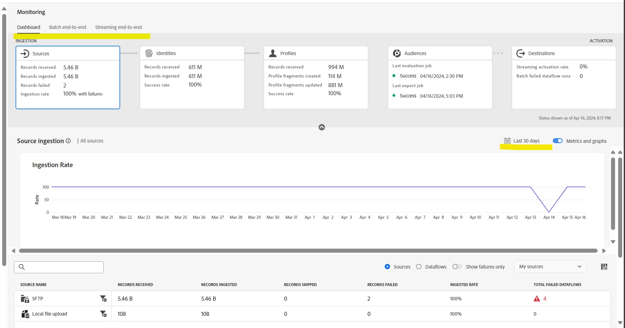Is there a quick way I would be able to make a report of all data available from the Source Dataflows and Destinations in the last 30 days, without having to manually go line by line and create a spreadsheet? You used to have the ability to at least copy and paste from the UI, and that seems to be gone now.