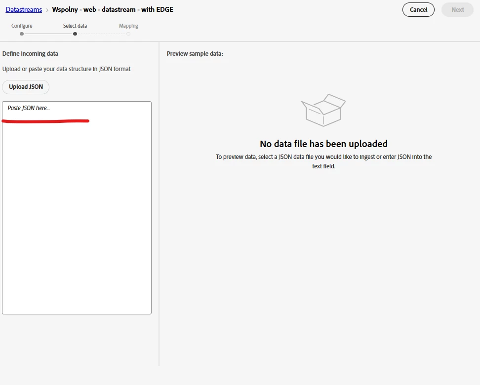 How to add such a thing to to upload to datastream to mapping??