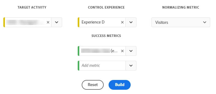 Even if I select this Experience D, it will build fine and actually show experience D as the control, but when the report gets rebuilt, it flips to display A as the control experience (see additional screenshot below)