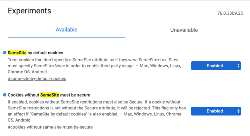 Keeping the above in mind, Chrome 80 will now introduce two independent settings for users: SameSite by default cookies, Cookies without SameSite must be secure. These settings will be enabled by default in Chrome 80.