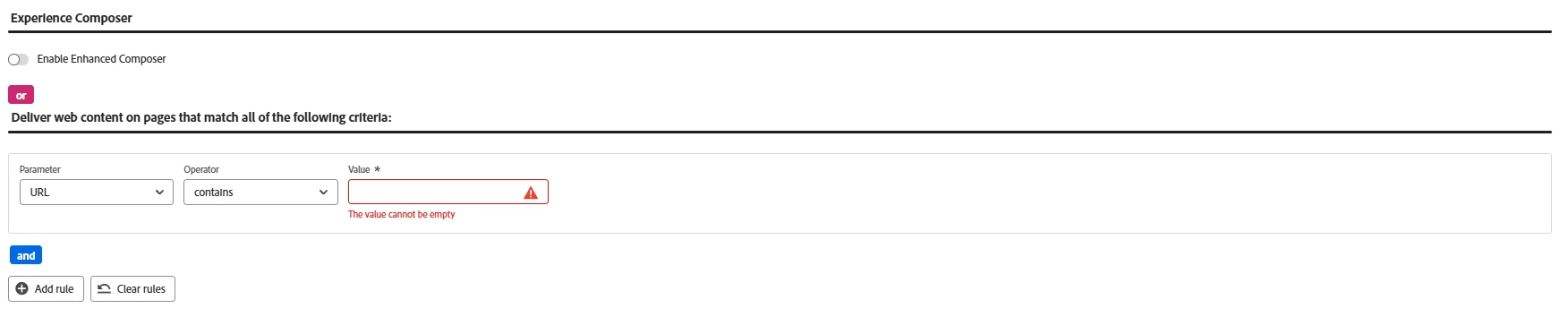 Adobe Target - Page Delivery - triggerView "contains" rule