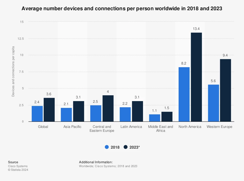 In today's ever-changing digital landscape, customers are increasingly connected across multiple devices, from smartphones and tablets to laptops and smartwatches. According a survey by Statista - the average number of devices per person in 2023 was 3.6. These numbers are staggeringly high in Western Europe - 9.6 and even higher in North America - 13.4 devices per person.