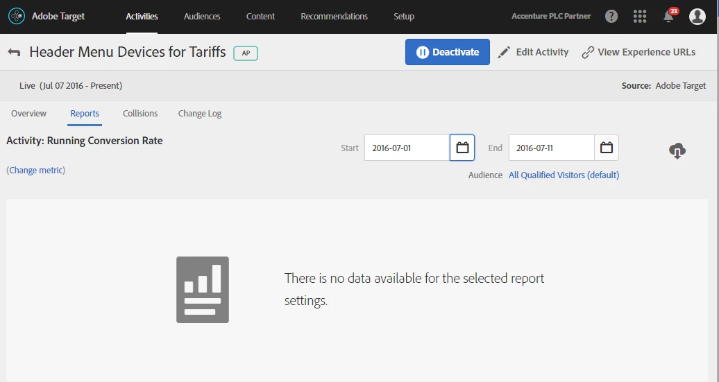 I tried creating some Automated Personalization activities, and the content is successfully delivered in the website, but reports for all the activities I tested are empty ("There is no data available for the selected report settings").