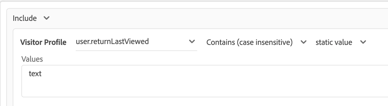 - Criteria: Users whose user.endpoint.lastViewedEntity contains "text".