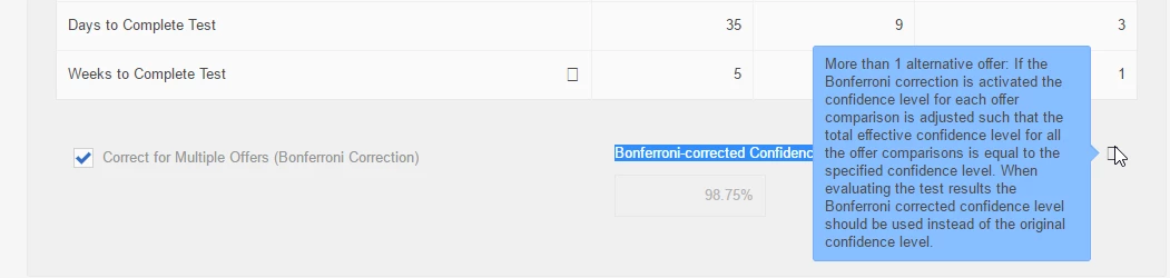For everyone else interested. Multiple family errors (alpha inflation) happens when testing more than one variant to 95% confidence (p = .05). While each test individually has a 5% chance of Type I error, as a family grouping the error rate increased with more variants. (Formula is: 1-(1-alpha)^n where alpha is .05 and n is the number of tests). So if we are testing 8 variations (+ 1 default), the formula would be: 1-(1-.05)^8 = .34 or a 34% chance of seeing a false positive among our grouping if we are testing 8 variants.