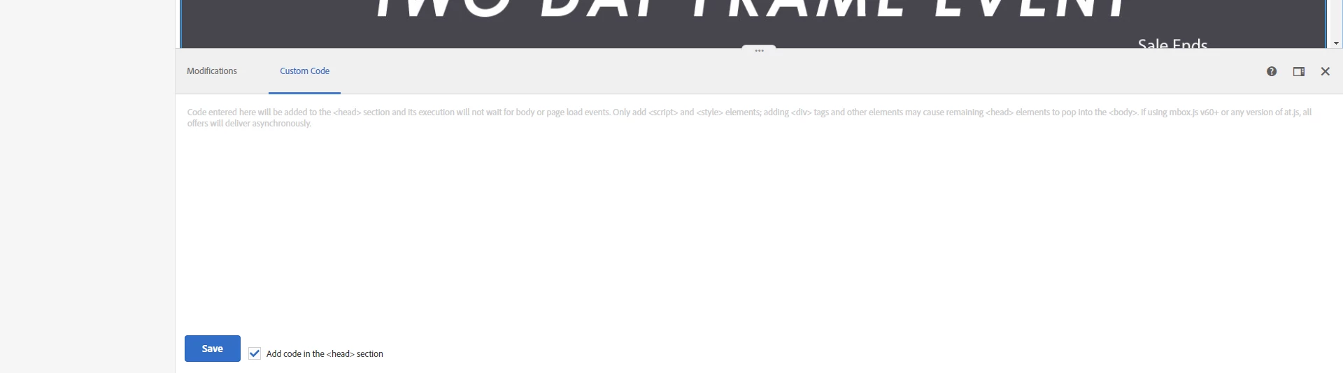 I'm glad my suggestion helped for the first part - to resolve the second part you can load your code in the <head> by selecting the checkbox in custom code as noted below.