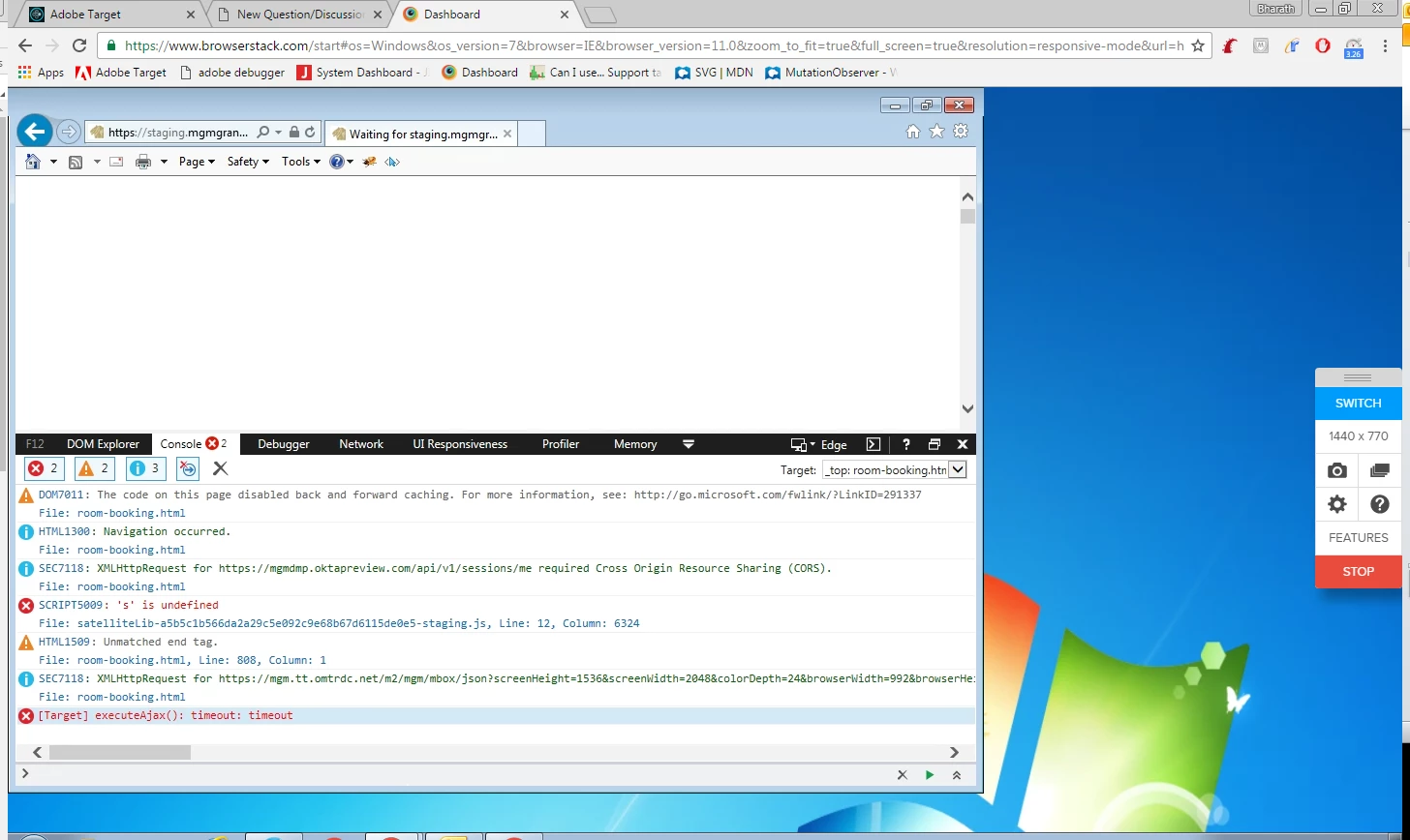 In the console, there is an error that says "[Target] executeAjax(): timeout : timeout".