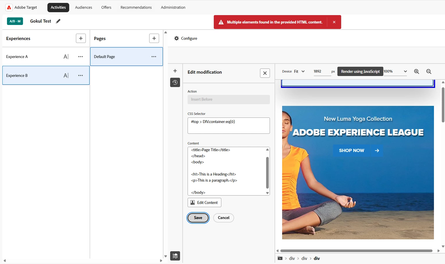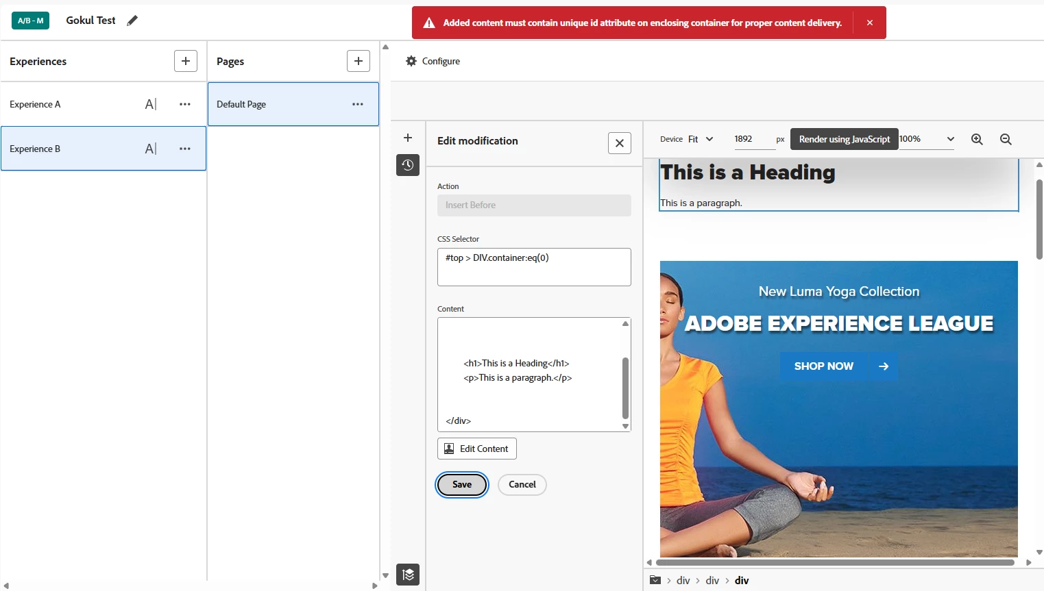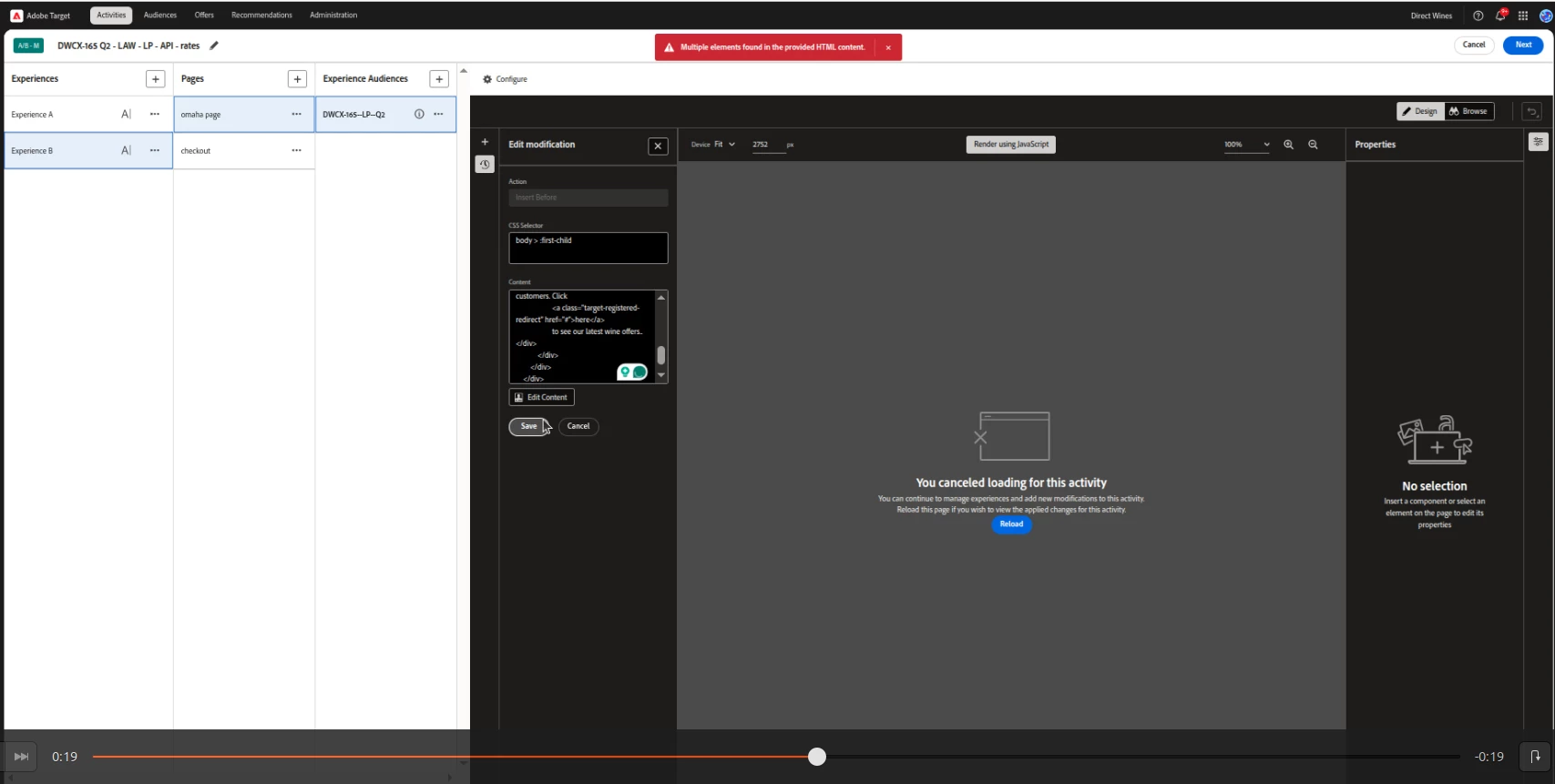 I’ve run into an issue with the Visual Experience Composer (VEC). Previously, I was able to use the “Add Before” and “Add After” features to insert multiple HTML elements at once (for example, multiple HTML elements added after an element).