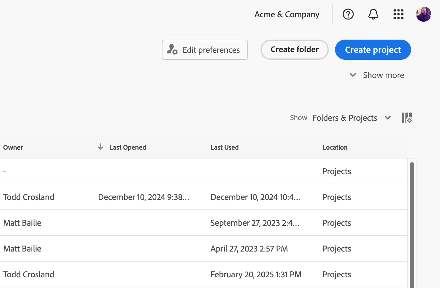 - Click the Create Project button in the top-right corner of the screen.