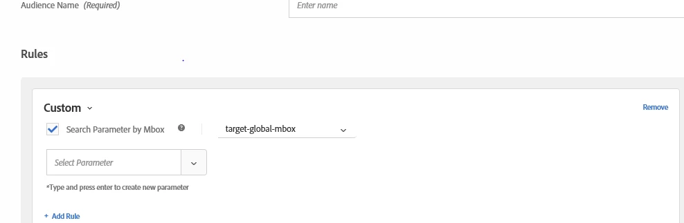 - How to create a "rawbox". At this stage when I try to create an Audience with a custom rule, I can only view "target-global-mbox".