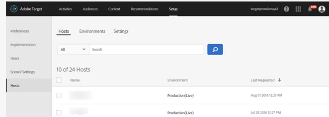To access the Hosts list, click Setup > Hosts.