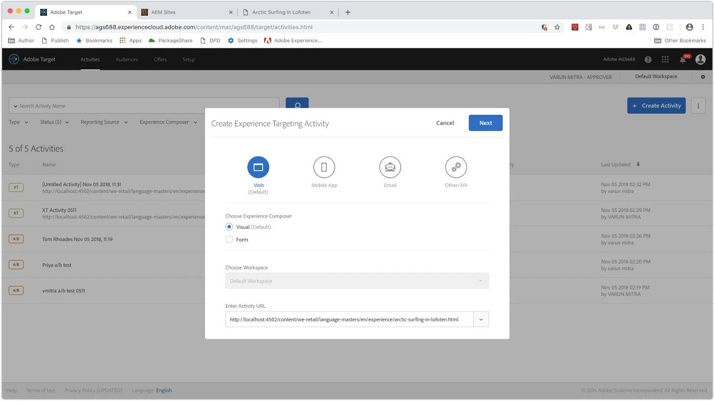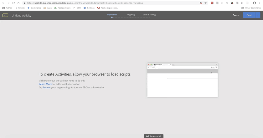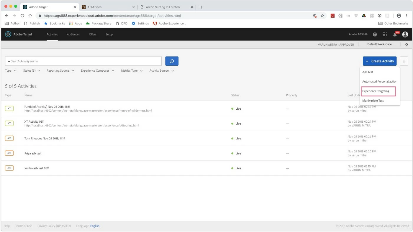 2. Click on “Create Activity” button and select “Experience Targeting”
