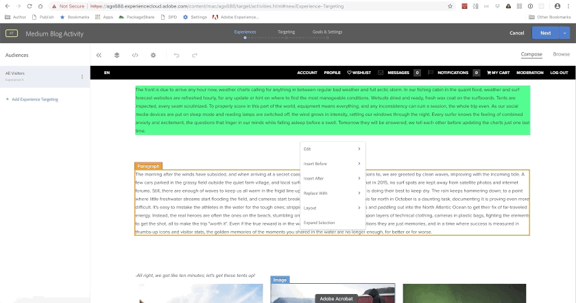 Adobe Target is a personalization solution that makes it easy to identify and deliver your best content. Adobe Target helps you create a targeted experience specific to each customer.