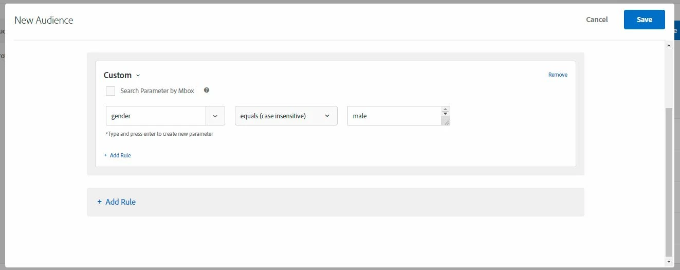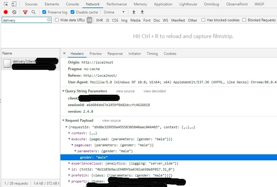 We can see the ‘gender’ parameter set as Page Parameter (mbox-parameter) in ‘target-global-mbox’ page call.