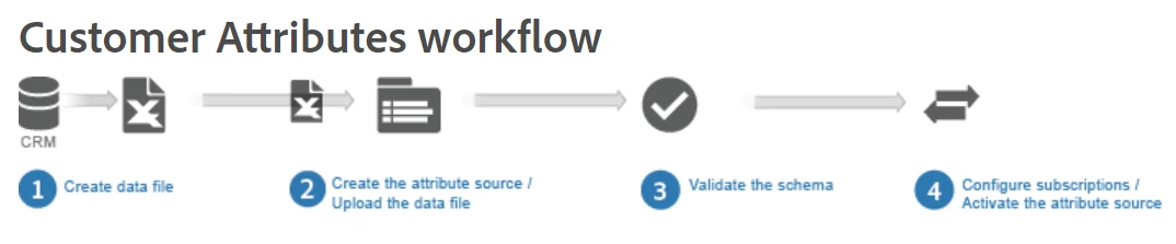• Customer attributes: Customer attributes let you upload visitor profile data via FTP to the Adobe Experience Cloud. Once uploaded, use the data in Adobe Analytics and Adobe Target. Target Standard customers can apply five attributes, Target Premium customers can apply 200 attributes.