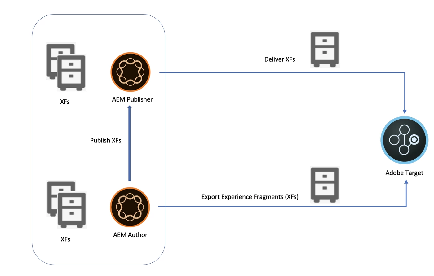 Experience Fragments, created in AEM can be exported to Adobe Target as HTML or JSON. They can then be used as offers in Target activities, to test and personalize experiences at scale. By default, Experience Fragments are delivered in the HTML format. This can be used by both AEM and third party channels alike. For export to Adobe Target, HTML is used.