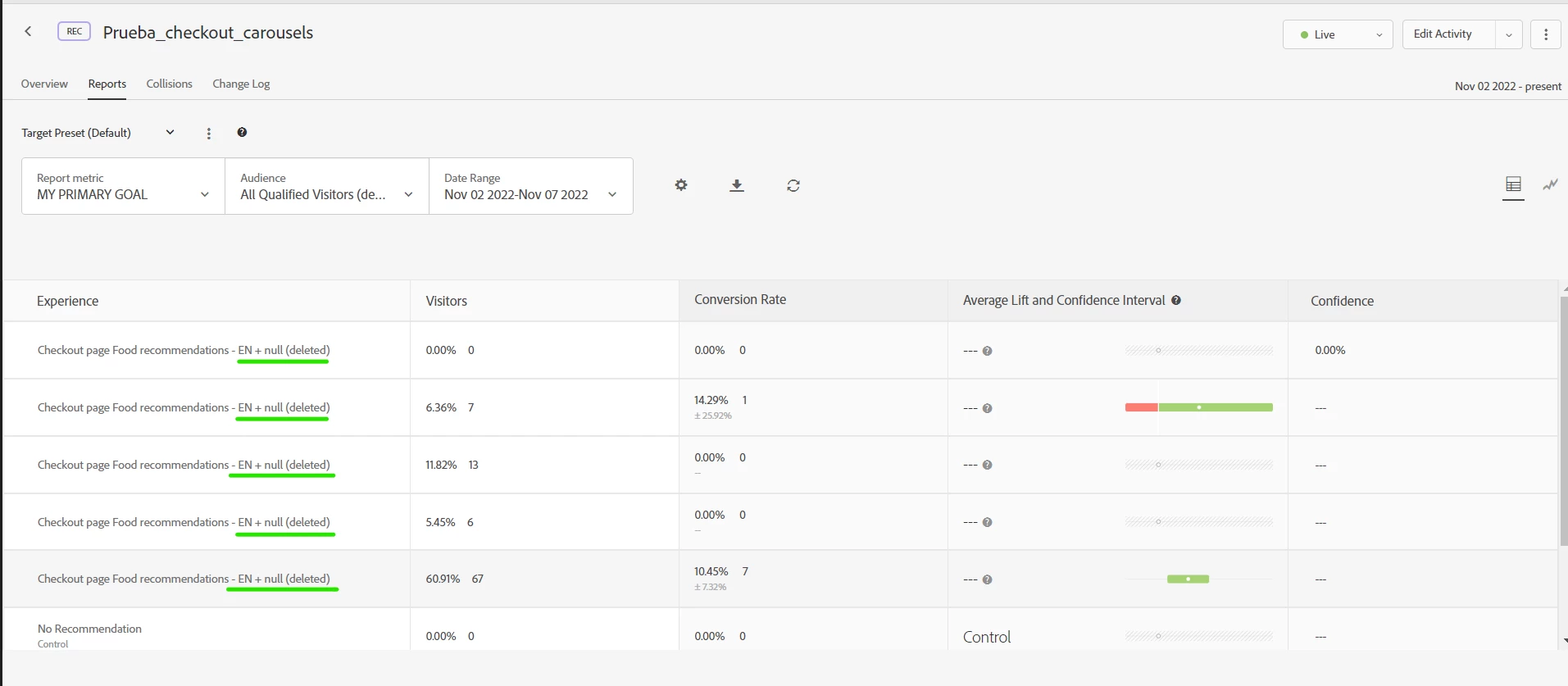 Null (deleted) in Adobe Target reports