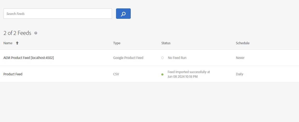 When I try to store product data feed to be used in Recommendations. The Feed section shows that data has been injected successfully: