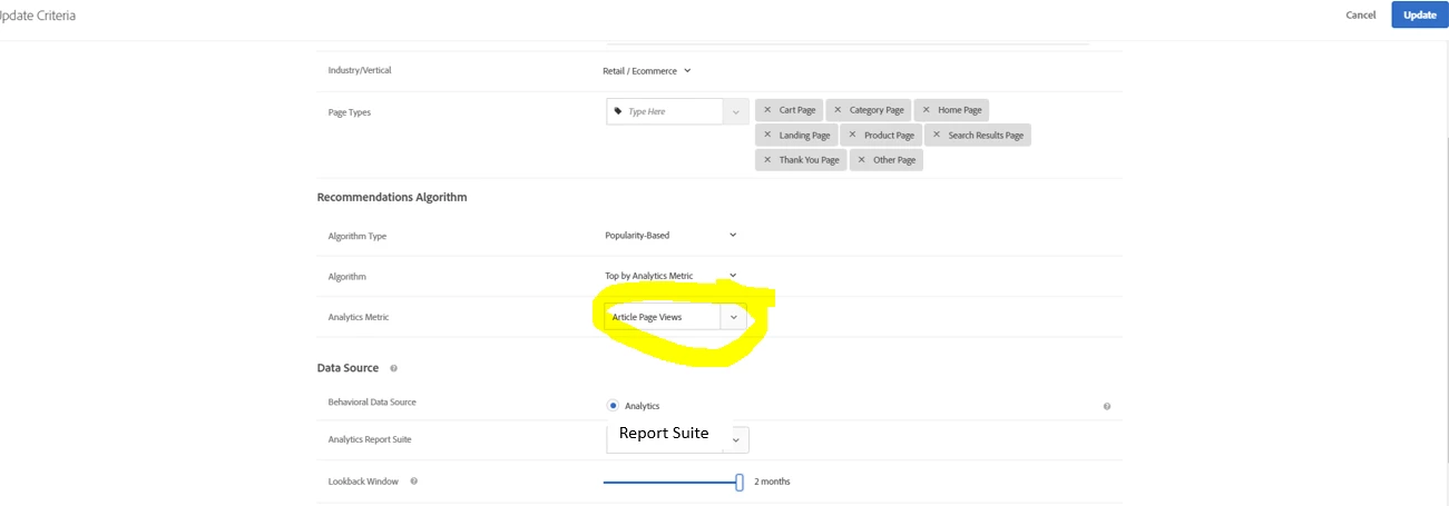 I created the Criteria and using Analytics Metric to determine the most viewed Article. Any suggestion why I cannot see the result from the criteria? For your information, I can see Article Page Views in my AA dashboard.