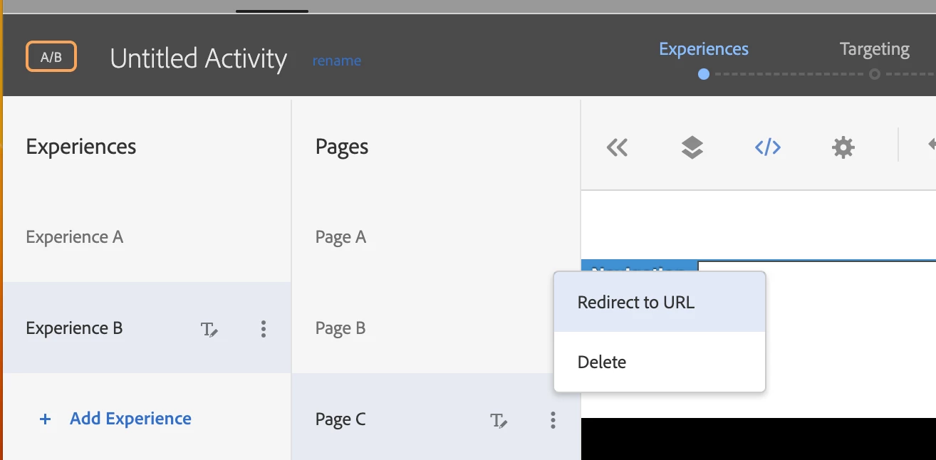 Hi, I need to set up an A/B test for three different pages redirecting to three separate URLs (Page A redirects to Page A', B to B' and C to C'). Is there a way to do this in the same Target Activity? Or would I need to have three different Activities for each page? Thanks!