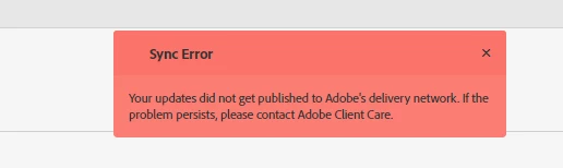 Your updates did not get published to Adobe's delivery network. If the problem persists, please contact Adobe Client Care.