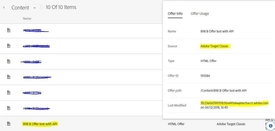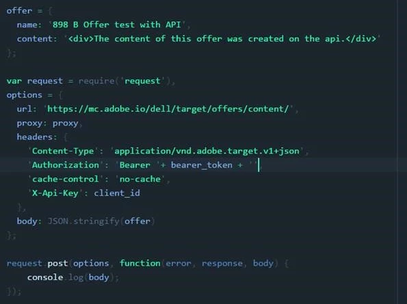 - I’ve created an offer over the Adobe Target API, as instructed by the documentation.