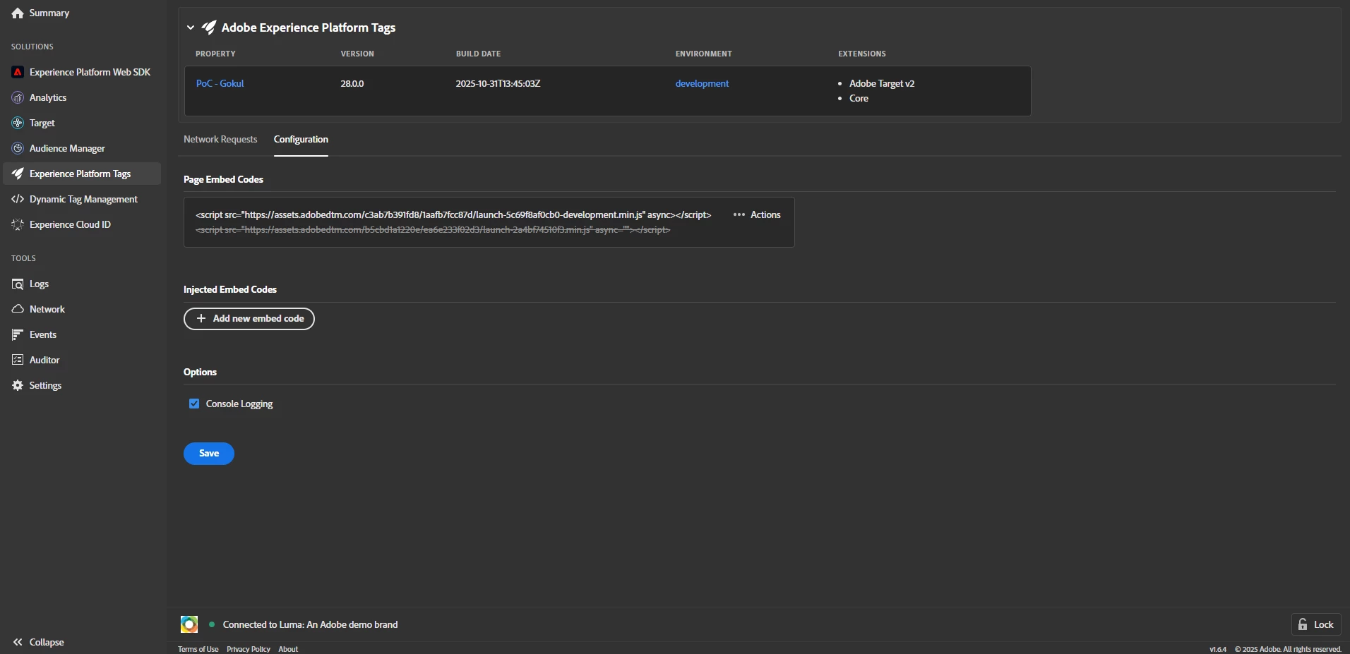 4) Enable console logging and Save.