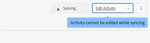 Lastly, I'm unable to pause or delete the activity while in sync mode.