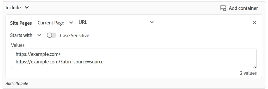 The activity fires correctly when users visit https://example.com/, but it doesn't trigger when users land on https://example.com/?utm_source=source or https://example.com/?abcdefjkl (any URL with query parameters).