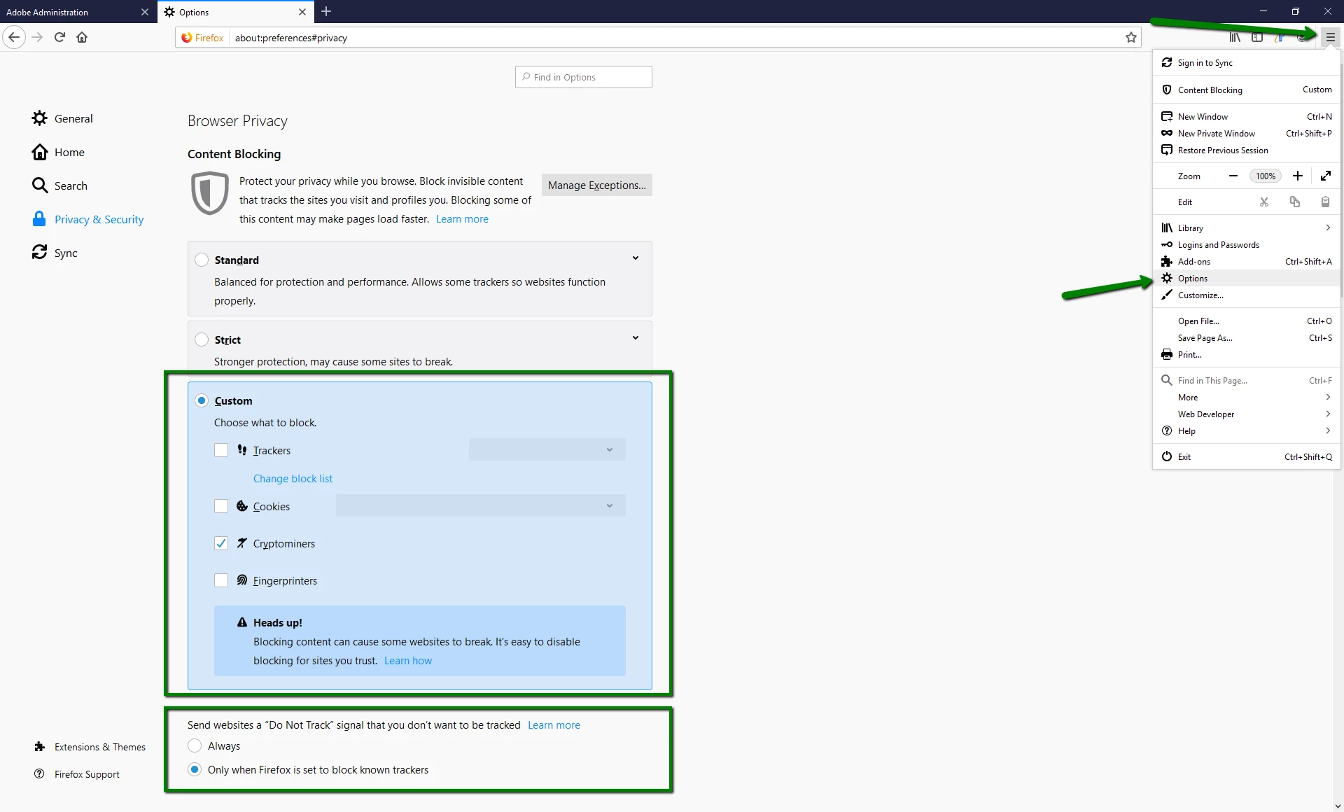Tests won't show up in Firefox browser and external link question