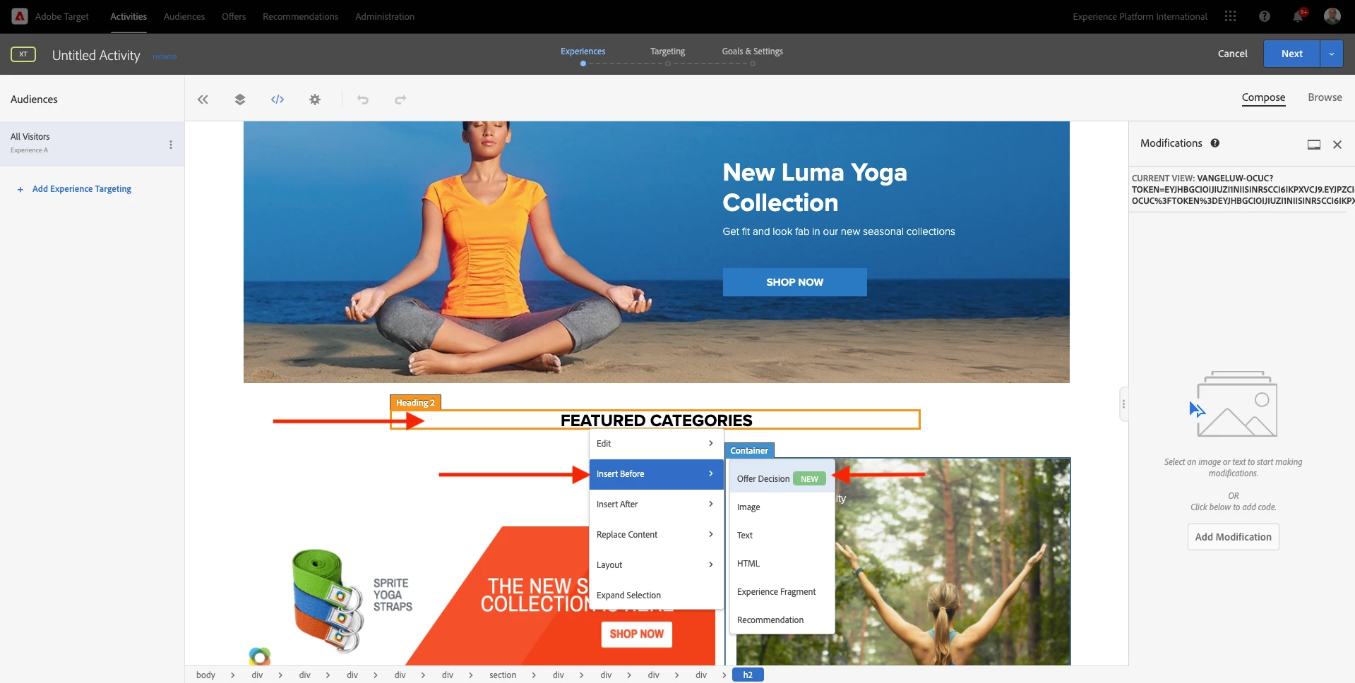 I was trying to replicate this step in my Target sandbox where the "Offer Decision" option should be showing (image below).