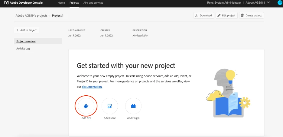 Before I test out an Admin API call I’m going to create a test project in the Adobe Developer Console so I can generate the credentials required to plug into the call. Navigate to the Adobe Developer Console where you will need to log in.