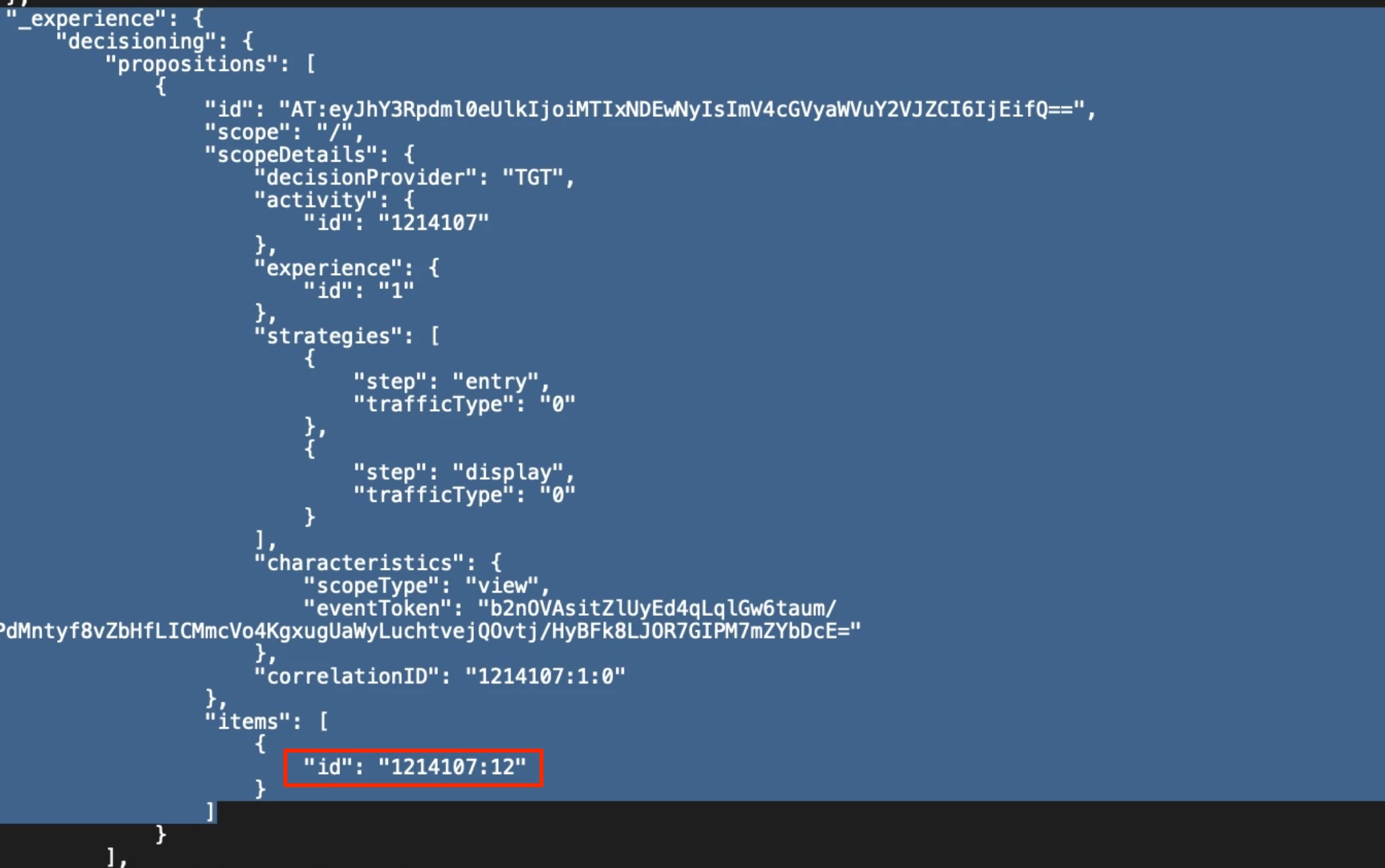 "The message cannot be validated due to the format error: #/_experience/decisioning/propositions/0/items/0/id: [1214107:12] is not a valid URI reference."