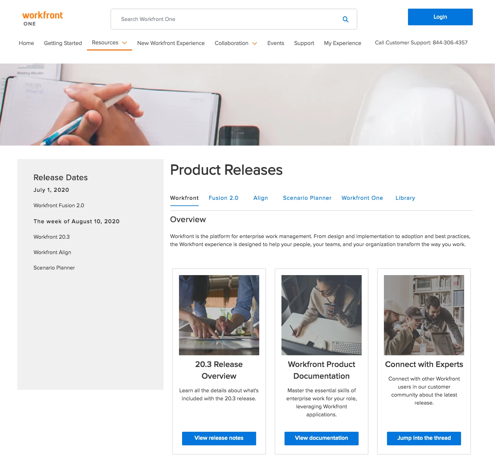 Find the latest product release news on the redesigned product release page on Workfront One.