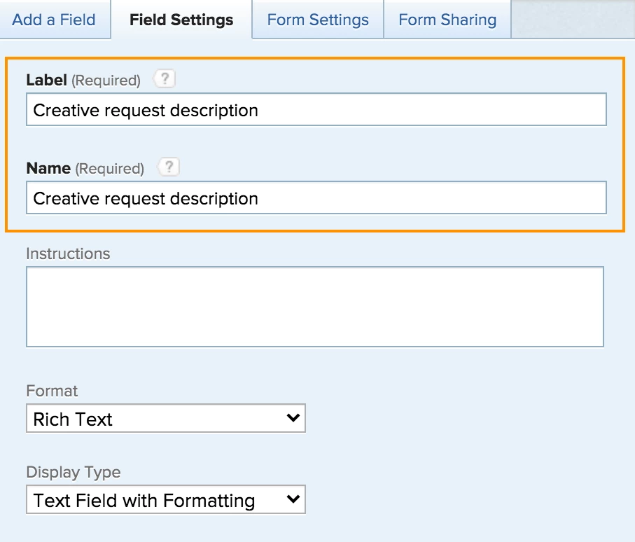 The Label and Name options on a custom field serve different purposes. Label is the field name that users will see in Workfront. Name is what can be used with integrations, such as API.