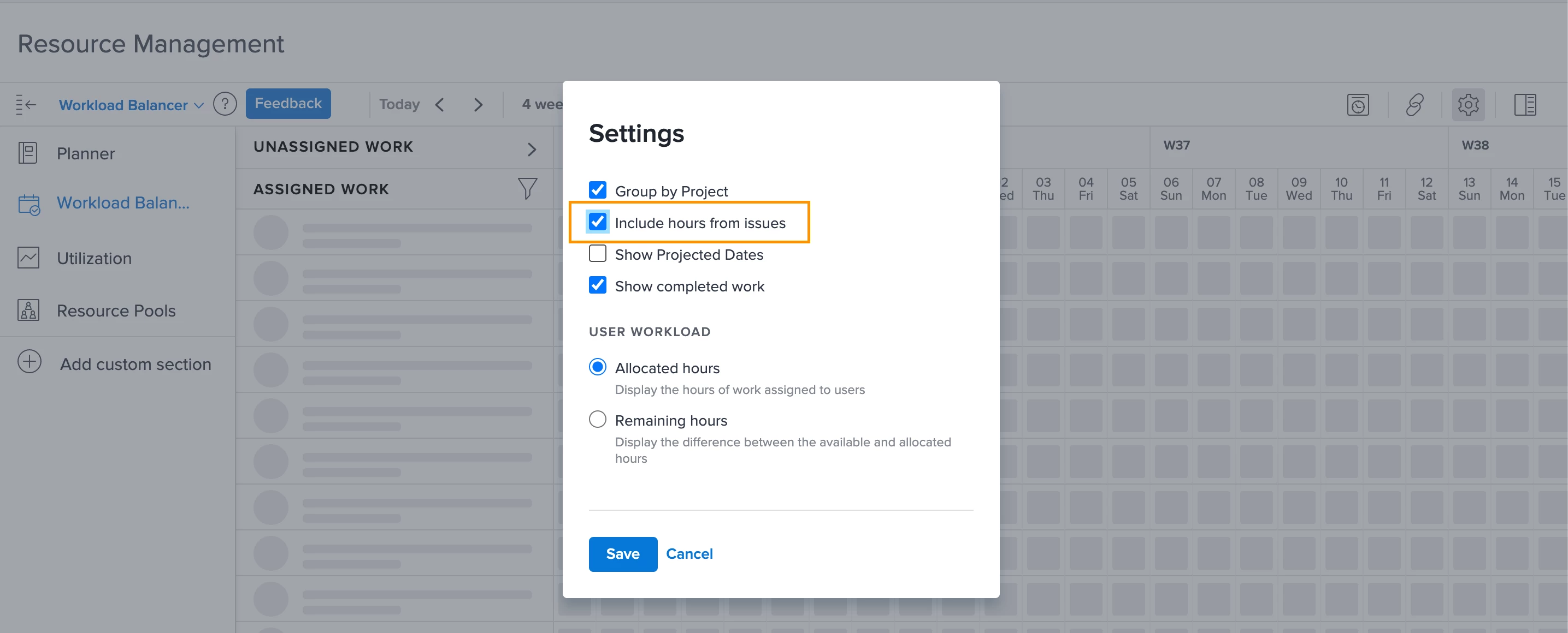 - By default, the Workload Balancer displays planned dates. Get a more accurate picture of work progress by displaying the projected dates. You’ll find a new option in the tool’s settings.
