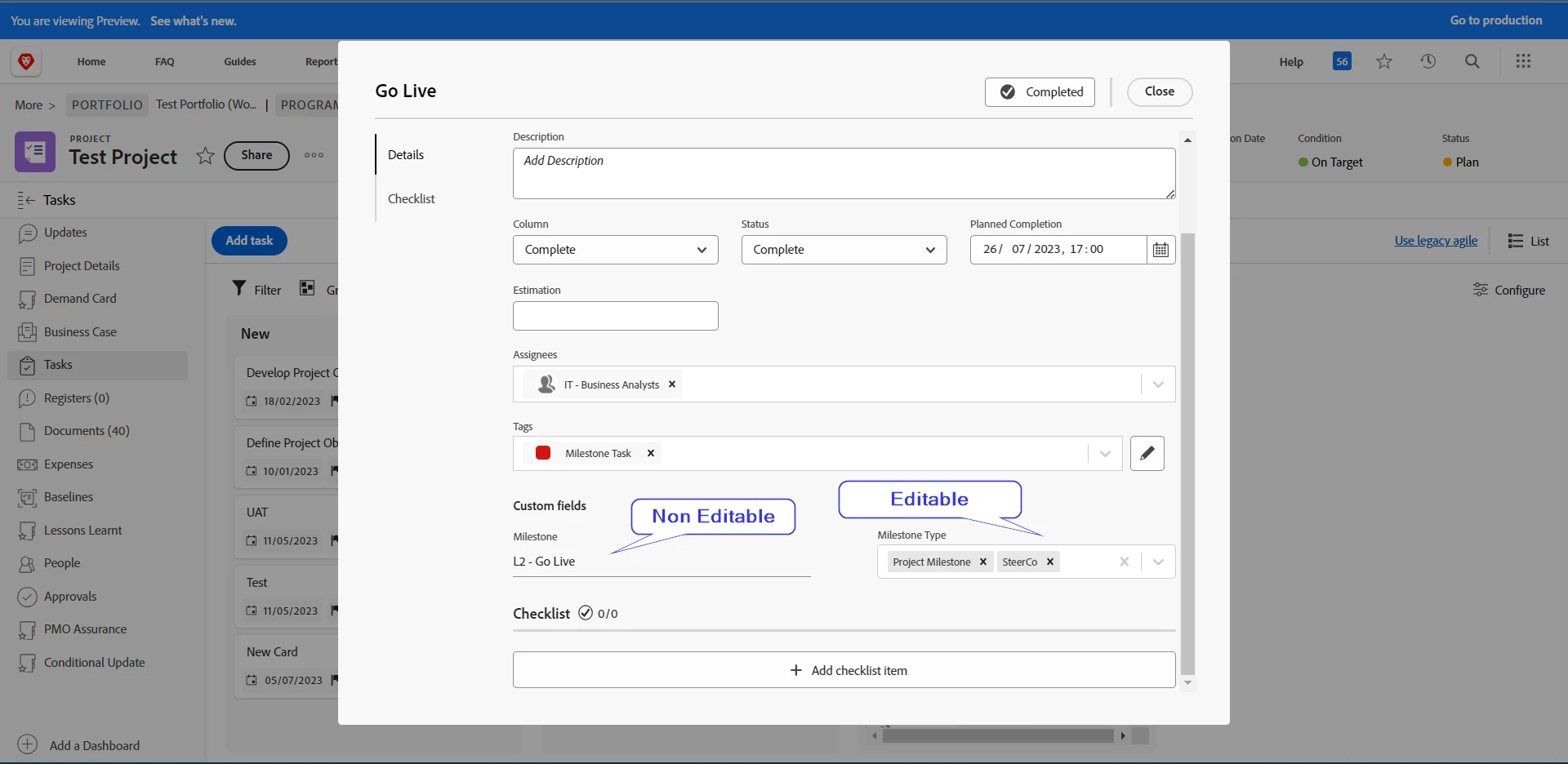 1) Please refer to the screenshot. In my project Kanban board, I have included two custom fields: 'Milestone Type' and 'Milestone'. While Milestone Type is editable, I noticed that the Milestone field is not. Can we have Milestone field editable too? This is important for us as we rely on milestones for reporting and work management.