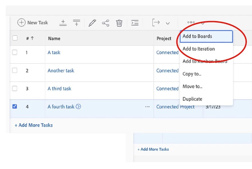 How would you like the feature to work? - In the Layouts area, have a section for the "More" menu that allows us to hide or show the menu items individually (Add to Boards, Add to Iteration, Add to Kanban Board, Copy to..., Move to..., Duplicate)