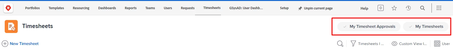 Ability to Manage Timesheet Page Top Right Shortcut Button