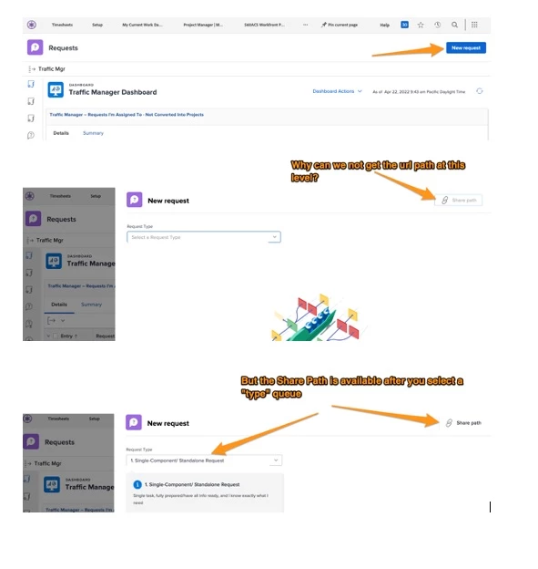 ISSUE: Cannot get and share the path of the topmost level of a request new issue page/button. C