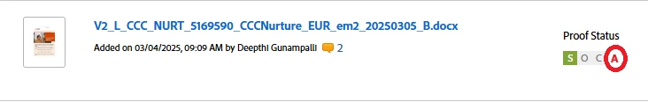 Description - Each file in Workfront when a proof is created has the SOC status views. We think adding A for Approved would be a good at-a-glance look to confirm a proof has been approved rather than pull over the sidebar and scroll down to see if a proof is approved.
