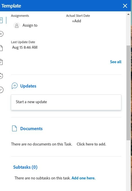 It would be helpful to be able to add a document to a task from a project summary page instead of having to open a new tab. We are able to add updates but not able to add documents from this page. We can also add multiple documents at once to the actual project and then "move" them to a specific task, but this is still the same amount of clicks as opening each task.