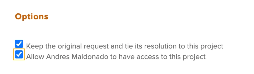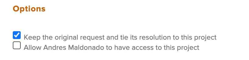 Automatically share the project with the user who submitted the original request at the time the request is converted. This would allow various users to get access to all their requests without manually checking this box each time.