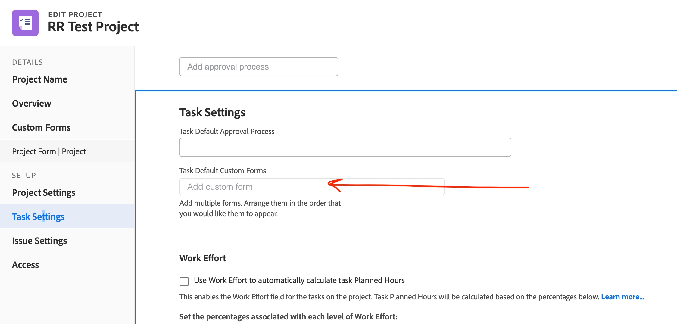 When I manually add a task through +Start Adding Tasks and/or +Add More Tasks, one specific form automatically attaches. This happens in any project, portfolio, program, etc. Thoughts on why this might be?