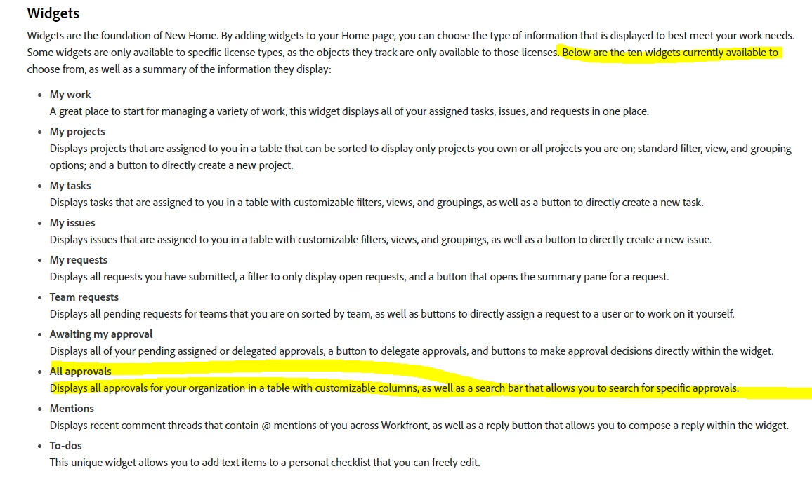 Is anyone else missing the All Approval Widget in their new homepage menu?
