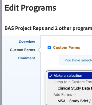 Allow bulk attachment of custom form to Programs