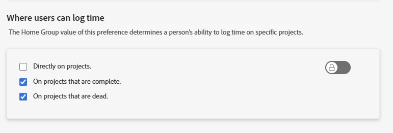 Allow for a master control to block time entry on a specific project but allow for task creation & adjustments