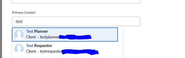 Description - When creating a request, it would be essential for our marketing department to be able to add user with the external user access level to the primary contact of the request. Currently we are unable to add users that are external users.